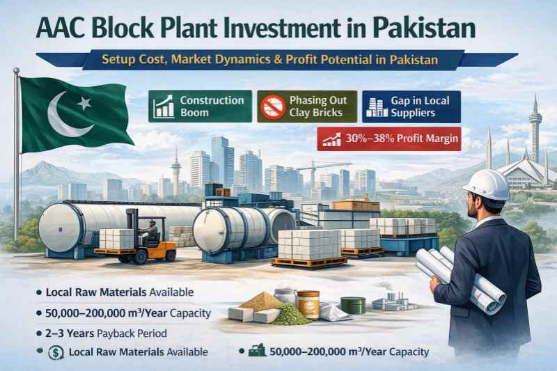An AAC block manufacturing plant in Pakistan offers investors a strong business opportunity in a market with high demand, limited local manufacturers, and supportive industrial trends.
